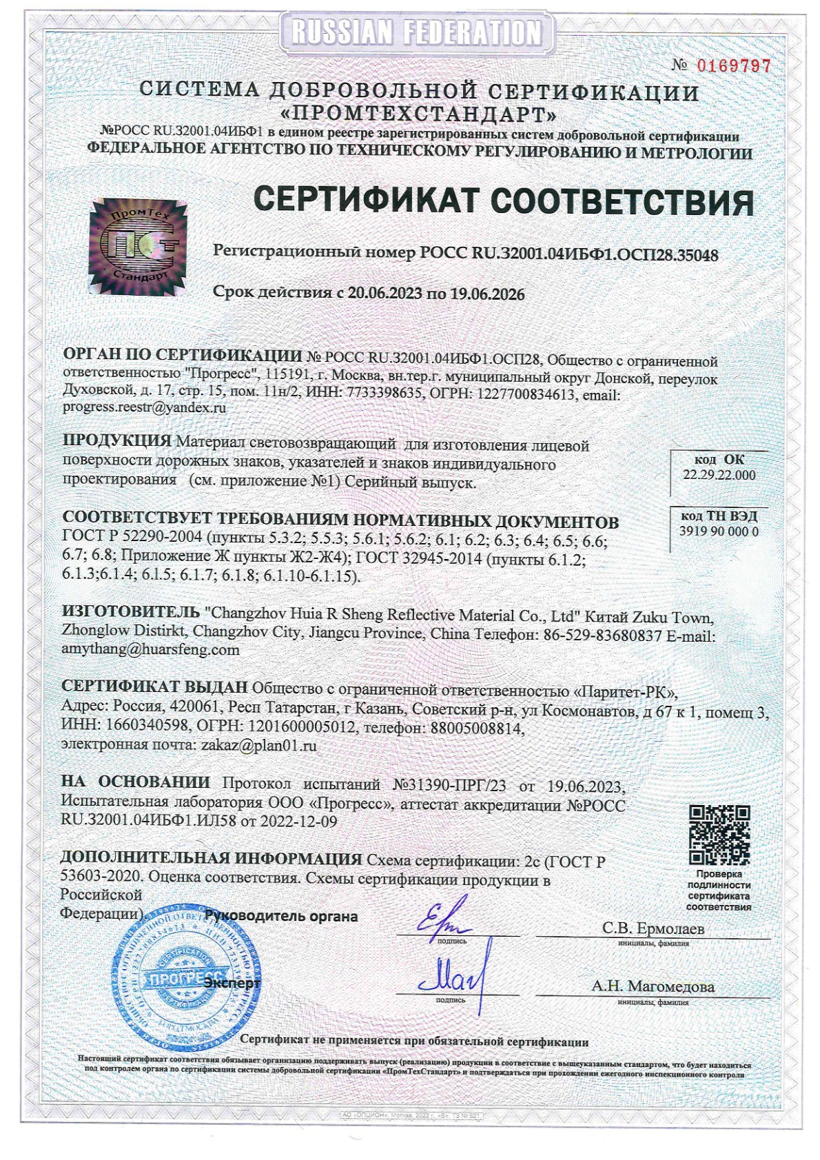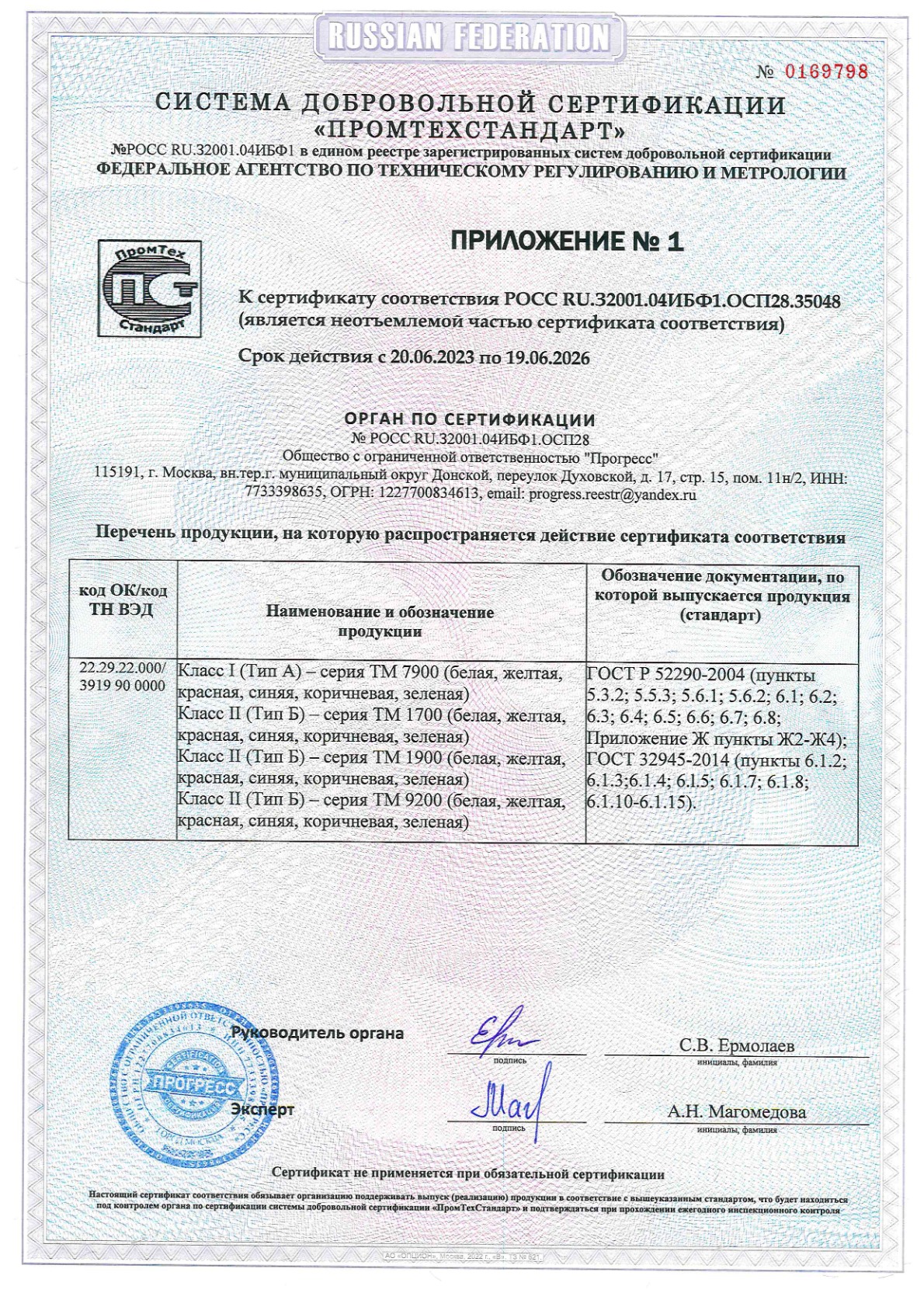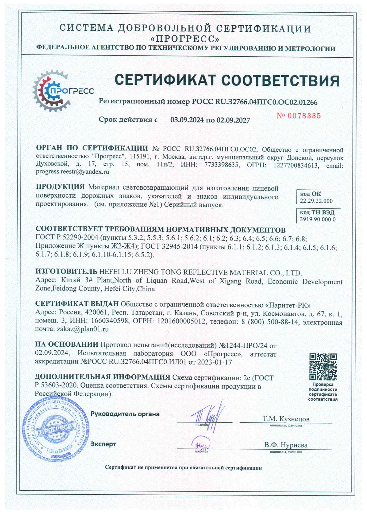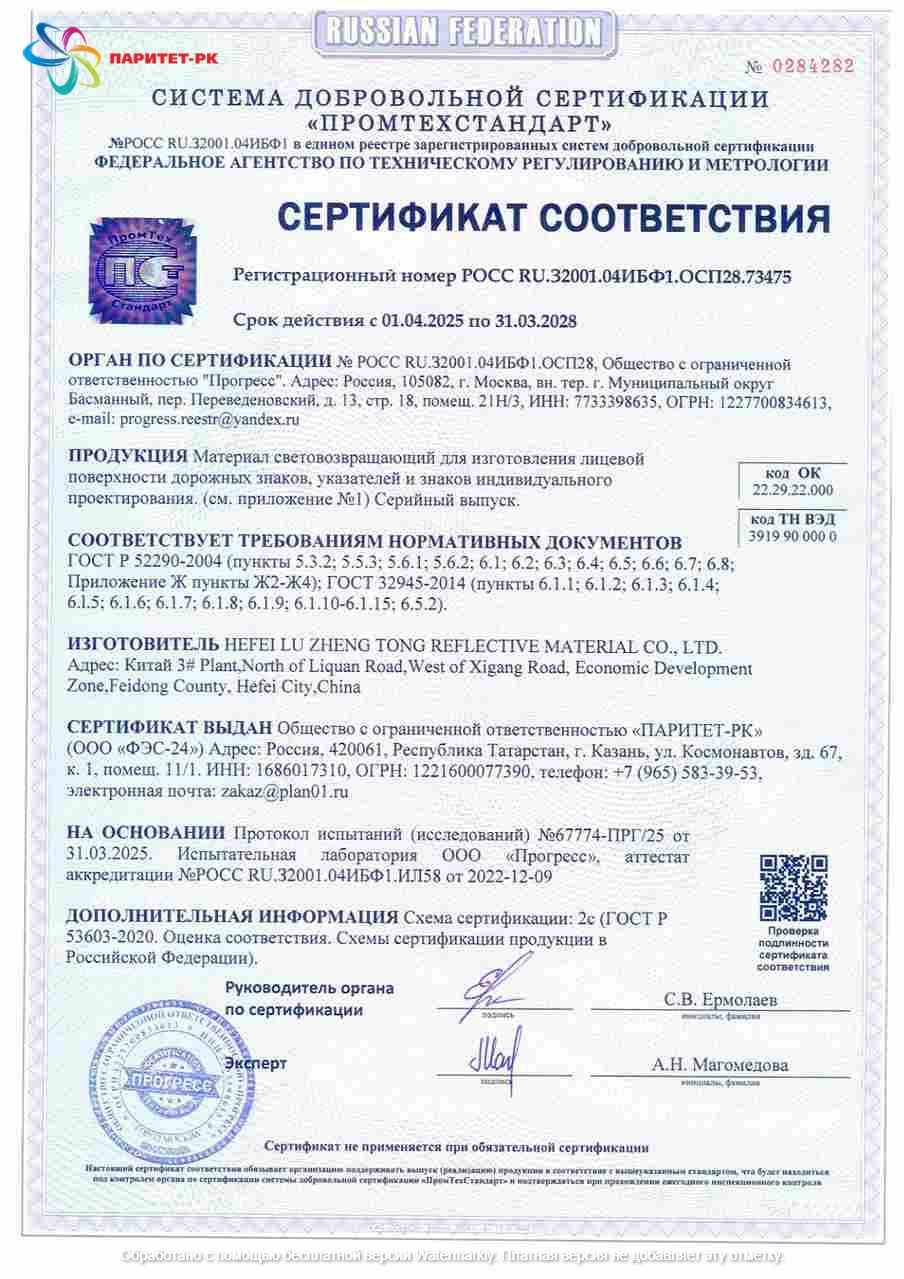 ООО «Паритет-РК» с 2012 года специализируется на разработке и выпуске фотолюминесцентных плёнок, занимая уверенные лидерские позиции в отрасли. Продукция компании соответствует требованиям ГОСТ 12.4.026-2015 (с изменением №1 от 01.10.2019 г.) и ГОСТ 34428-2018, что подтверждено сертификатами безопасности.